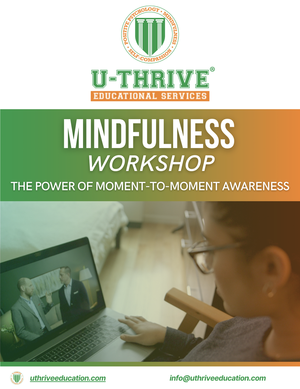 U-Thrive Educational Services is a mission-driven organization committed to proactively equipping college students with the skills to manage stress, become more resilient, and thrive throughout their college experience and beyond. We partner with higher education institutions to provide curricular and co-curricular solutions rooted in the evidence-based fields of Positive Psychology, Mindfulness, and Self-Compassion.
